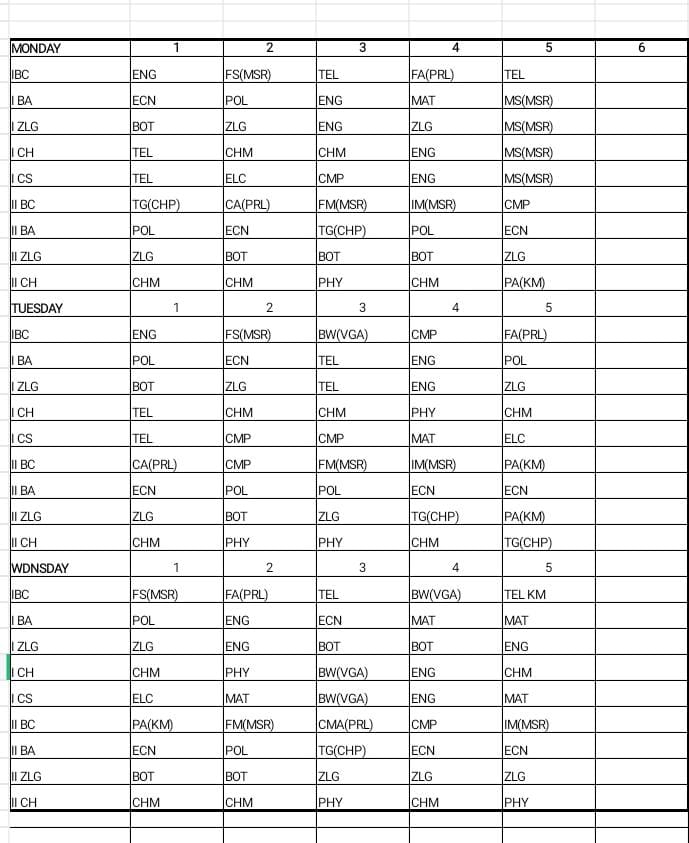 1 2ND SEMESTER TIME TABLE Download